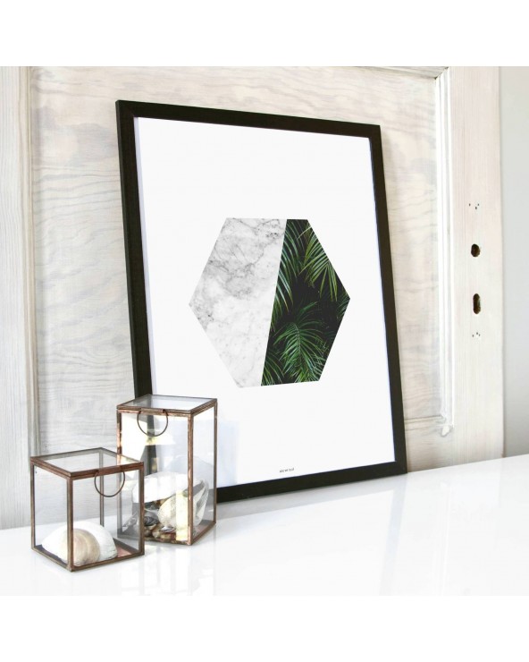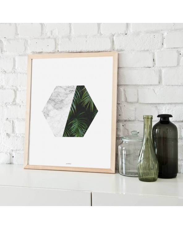 Kolejny świetny mix motywu tropikalnego i marmurowego – dwóch najsilniejszych trendów w ostatnim czasie. Zobacz także plakat Tropikalnie marmurowo I. Te dwa plakaty to elegancja w pigułce.