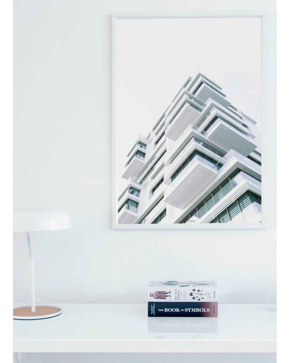 Grafika dla miłośników prostoty, bieli i architektury. Koniecznie do powieszenia na białej ścianie - wówczas da pożądany efekt ultraminimalizmu. Do nowoczesnych wnętrz. Może być w serii plakatów architektonicznych.