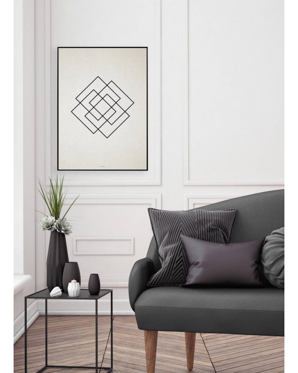 Minimalizm pachnący vintage? To dzięki użyciu tła imitującego stary, lekko kremowy papier. Chcemy, aby tym sposobem plakat pasował nie tylko do minimalistycznych wnętrz na wysoki połysk, ale i do tych z elementami z drewna. Fajnie zagra wśród dużej ilości zieleni w pomieszczeniu.